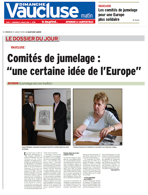 | Article du Journal «Le Dauphiné Libéré – Vaucluse Matin» du 31 Juillet 2016 |
