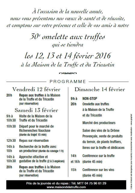 D’autres renseignements : Maison de la Truffe et du Tricastin au (33) 4 75 96 61 29
