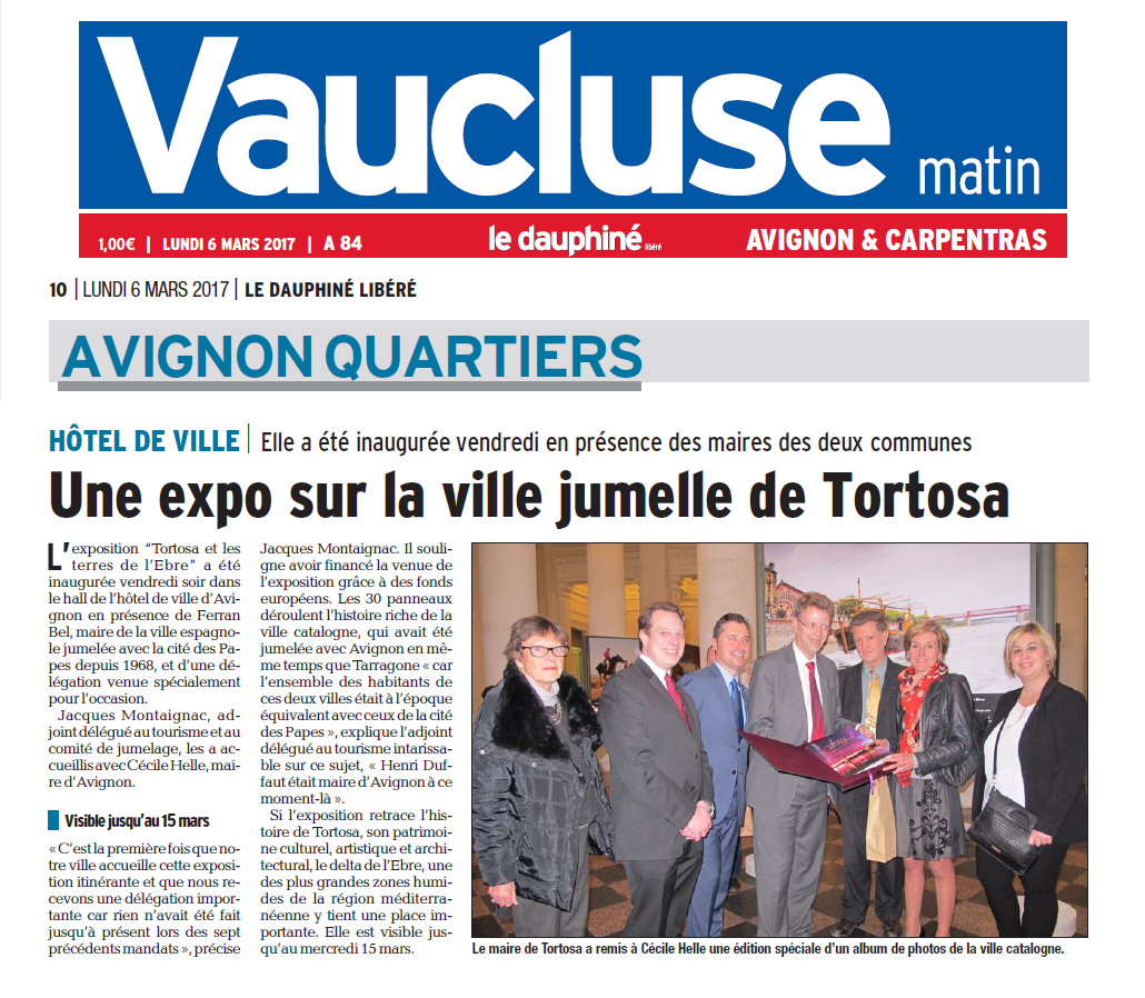 L’exposition à eu pour but de démontrer aux avignonnais la découverte de toute les richesses historique, culturelles et architecturales de notre Ville jumelle Tortosa, située sur l’Ebre à 12 mètres au-dessus du niveau de la mer. La commune compte plus de 35,000 habitants et près de 100 nationalités différentes.