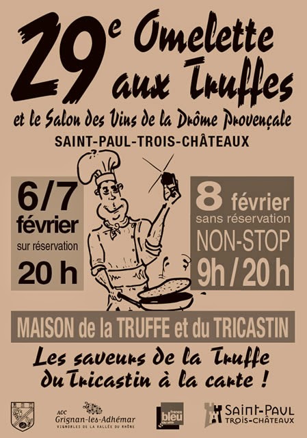 Chaque Année mi-février notre association participe au Festival de la Truffe et du Vin à Saint Paul Trois Châteaux (Drôme) et afin de passer un bon moment entre des amis avec du bon vin et un omelette ou un repas fait du célèbre diamant noir accompagnée du salon des vins, met à l’honneur le terroir local, dans la chaleur de la convivialité qui le caractérise.