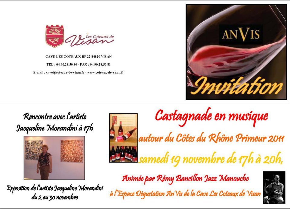 Castagnade en Musique autour du Côtes du Rhône Primeur à Visan dans « l’Enclau dei Papas » – 19 Novembre 2011 de 17h à 20h.