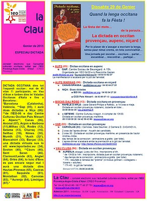 Vos esperam totei òmes e fremas, joines ò mens joines, començaires ò confirmats… per participar a la fèsta dela lenga occitana… lo dissabte 29 de Genier per La dictada en occitan provençau, aupenc, niçard !