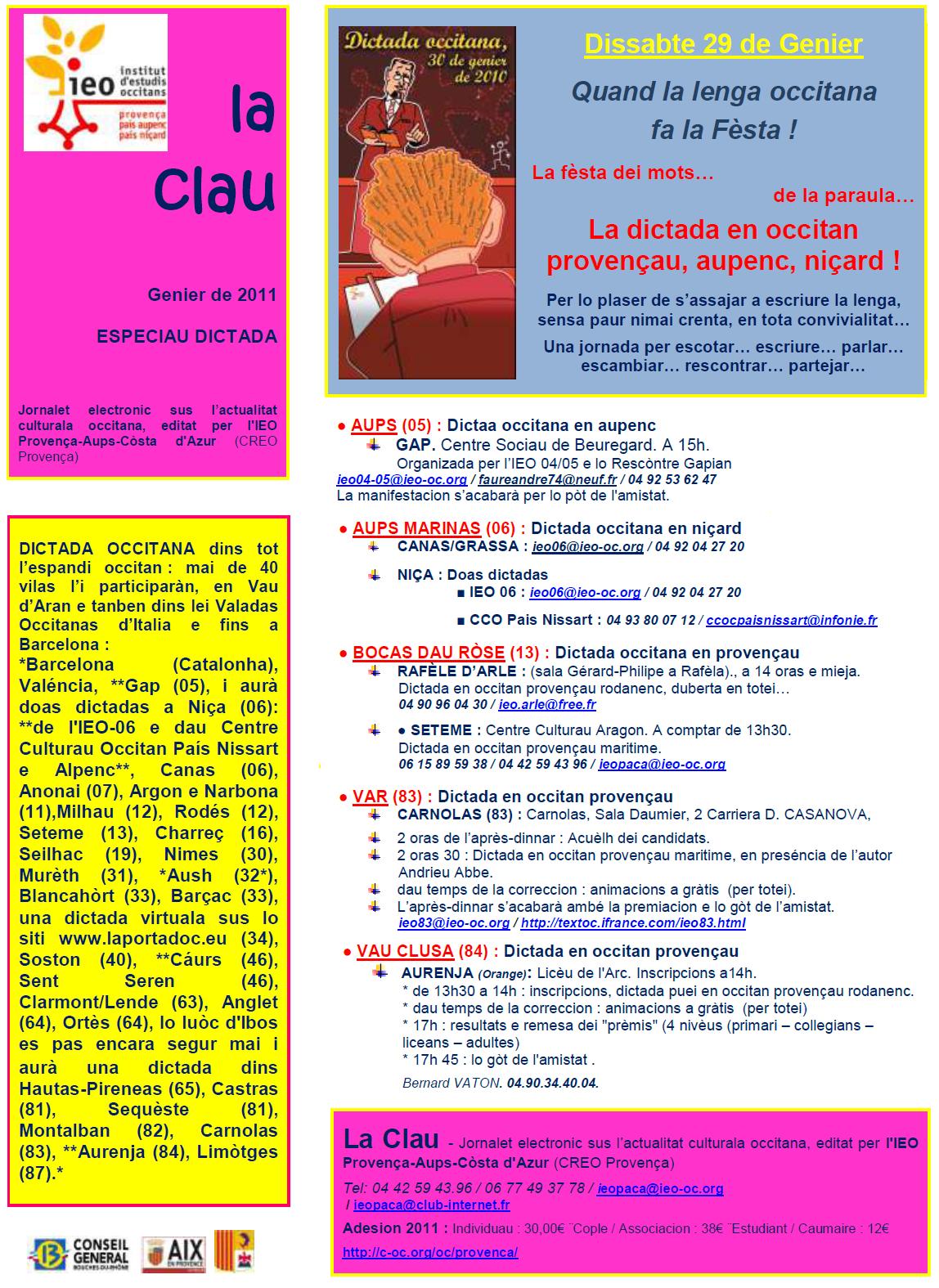 Vos esperam totei òmes e fremas, joines ò mens joines, començaires ò confirmats… per participar a la fèsta dela lenga occitana… lo dissabte 29 de Genier per La dictada en occitan provençau, aupenc, niçard !