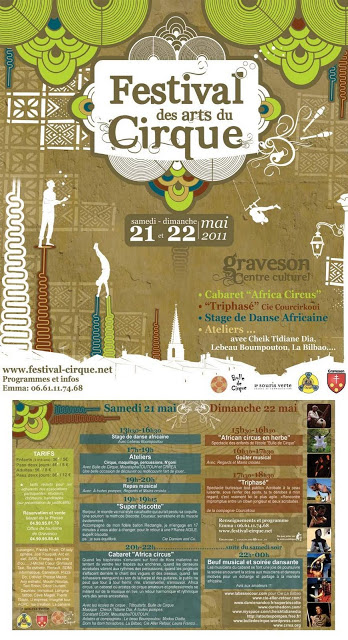 Notre Association est fier d’être sponsor et de vous inviter au 2ème Festival des Arts de Cirque à Graveson, (Provence-Occitanie) le 21 et 22 Mai 2011. A 15 minutes d’Avignon dans les Bouches du Rhône