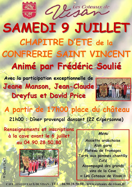 Our President, David Price, was inducted on Saturday, 9 July 2011 into the brotherhood of Saint Vincent in the city of Visan (Enclave of the Popes – Vaucluse 84) France, for his actions to promote the culture, language and the products of greater Occitania, both locally and abroad.