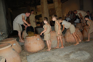 Today, Sunday, September 11, 2011 from 14h to 17h at our partner the “Mas des Tourelles,” the Roman wine cellar comes alive with workers, in period costumes, who will crush the grapes by foot and work the reconstructed wine press of described by Cato the Elder.
